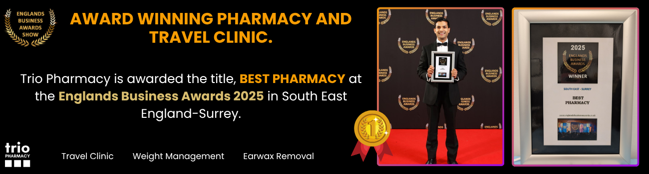 Your trusted healthcare partner in Shepperton. As the only independent pharmacy in Shepperton, we’ve been dedicated to serving our community for over forty years with exceptional care. At Trio Pharmacy, we offer a wide range of clinical services, including our Travel & Vaccination Clinic, Ear Wax Removal Clinic, Weight Loss Clinic, Diabetes Clinic, Skin & Hair Clinic and Mobility Centre. Our commitment to providing professional, evidence-based advice and personalized care sets us apart. We’re here to empower you with the health information and support you need, always delivered with a compassionate touch.